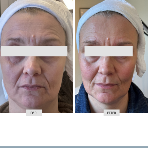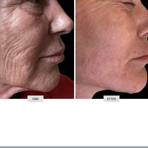 Vores før- og efterbilleder viser, hvordan skånsomme, ikke-kirurgiske behandlinger kan skabe naturlige og harmoniske resultater – altid med fokus på tryghed, faglighed og respekt for dit personlige udtryk. Førbilledet vises til venstre og efterbilledet til højre.