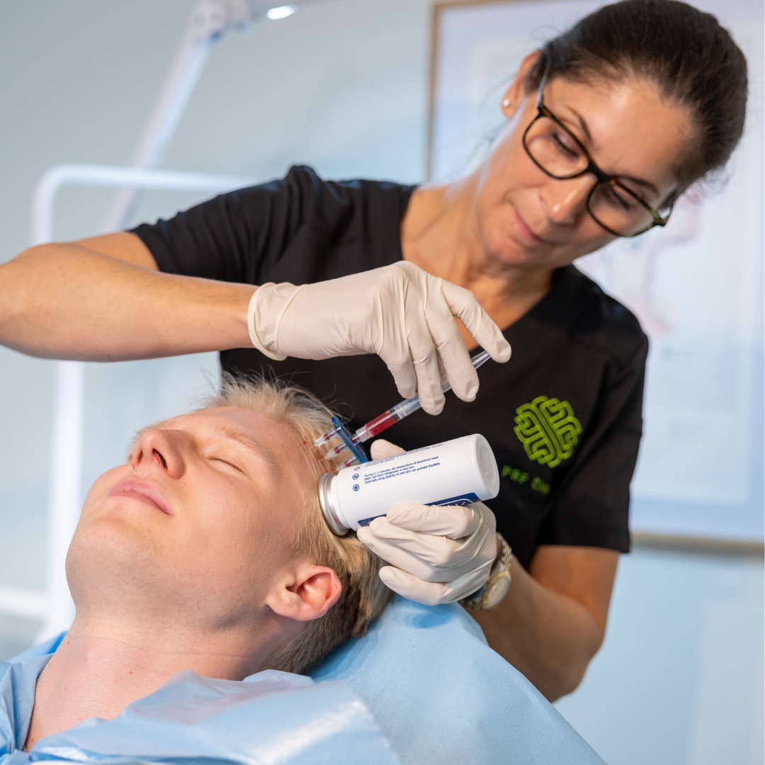 TIL BEHANDLINGPRF-behandling er en naturlig løsning mod hårtab hos mænd, der bruger kroppens egne vækstfaktorer til at stimulere hårsækkene og give langvarige resultater.